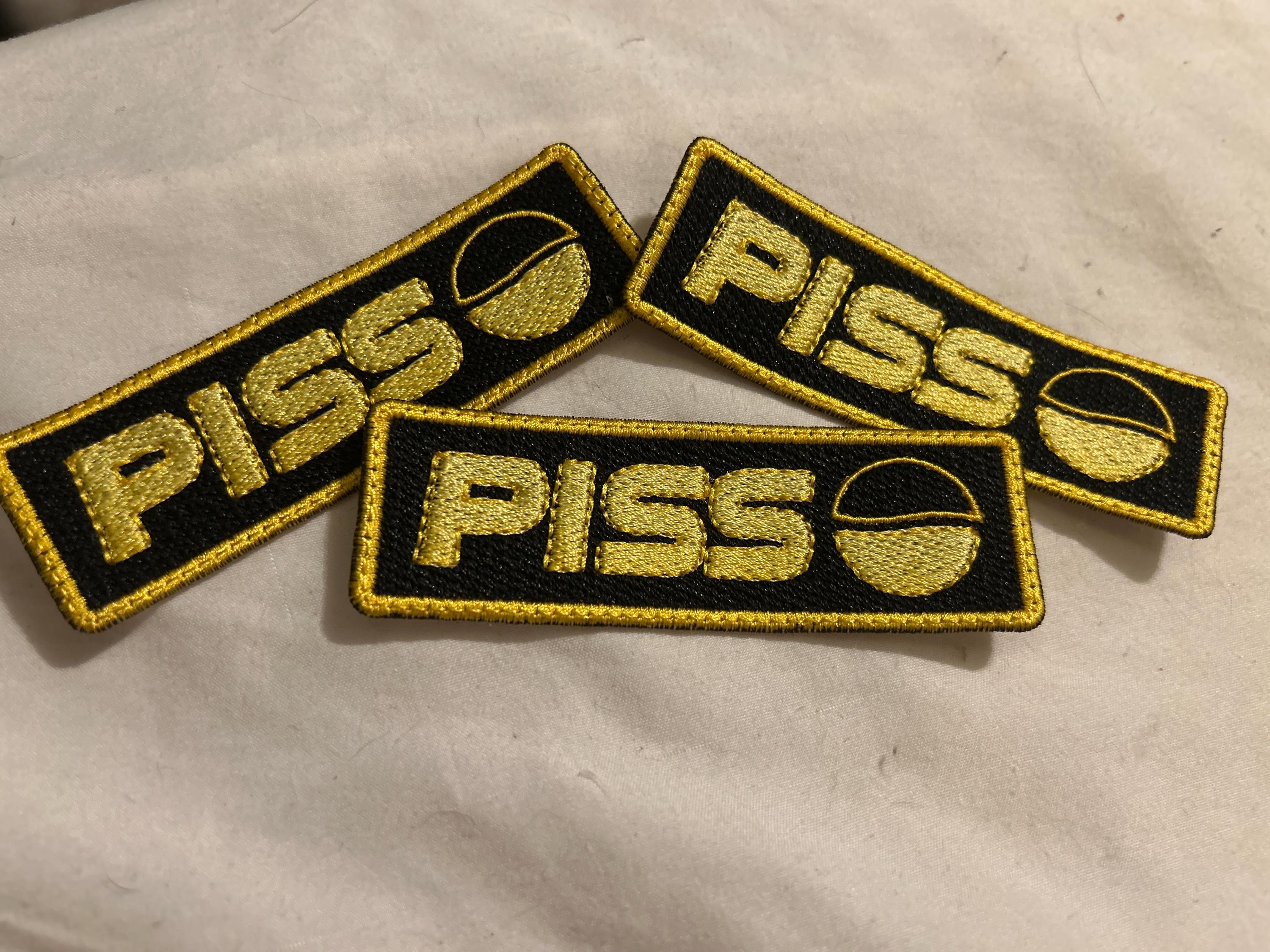 Embrace the unexpected and show your unique sense of humor with this "Piss" Embroidered Patch. It's a playful twist on a familiar logo that is sure to turn heads and generate smiles wherever you go. Whether you're a collector of quirky patches or seeking a statement piece to express your individuality, this patch is an ideal choice for those who appreciate a touch of irreverent charm.