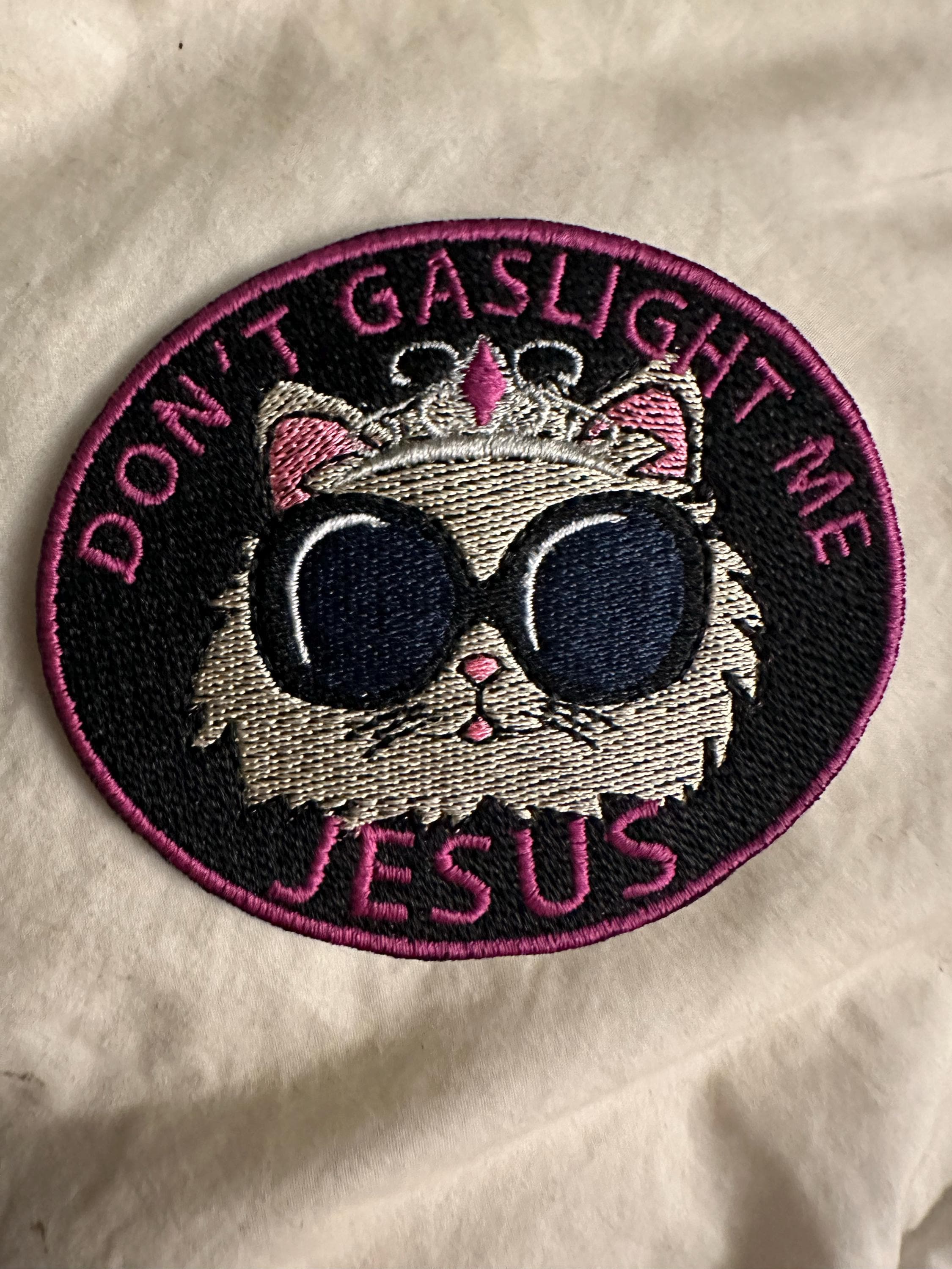When purchasing please select whether you'd like a "Royal Court of Princess Donut" "Don't Gaslight Me Jesus" or Robot Donut's "I Love Lasagna Carl". If you would like a different Donut line, please feel free to enter it into the personalization field and we'll make it happen.